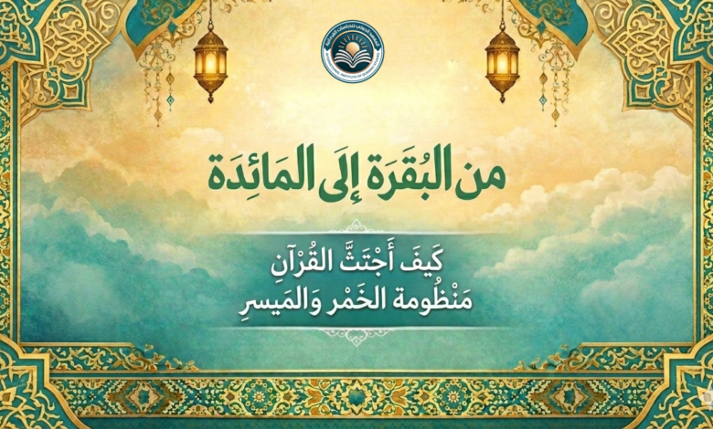 • “الخمر” المعرّفة في البقرة/المائدة لا تأتي معها قرينة شرب، بل تأتي في خطاب تقويمي اجتماعي.